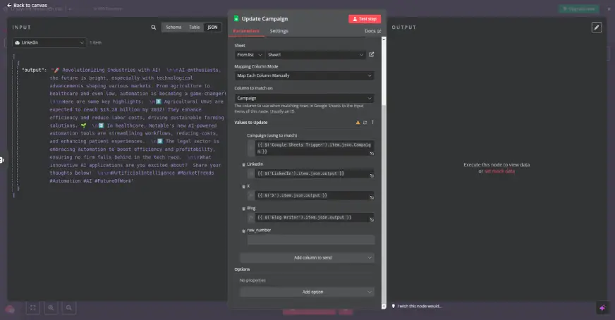 LinkedIn= {{ $(‘LinkedIn’).item.json.output }}