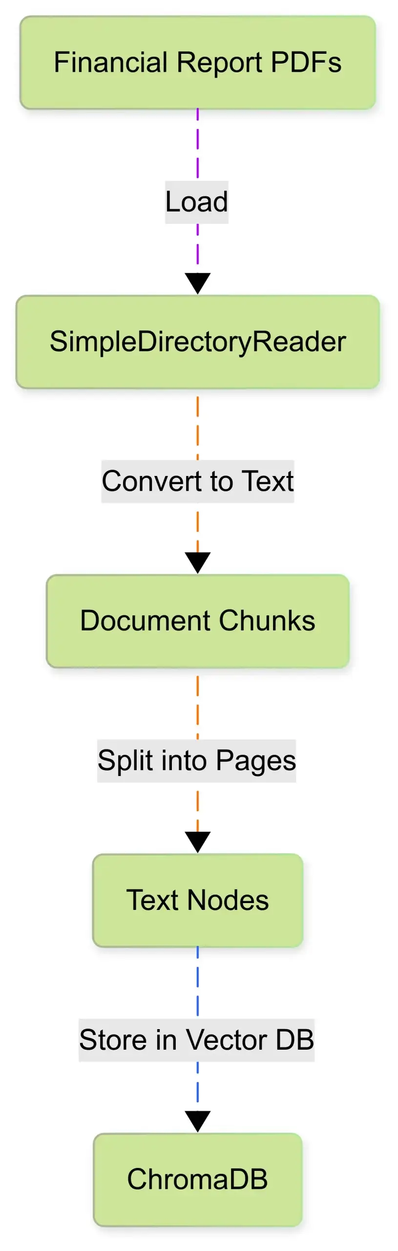 A. 系统设计用于处理任何结构化的财务文件,将其分解为文本块,嵌入并存储在 ChromaDB 中。新报告可以动态添加,无需重新建立索引。