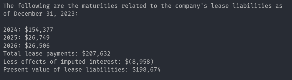 response = query_engine.query( "What are leases of the company with yearwise financial data?" ) print(str(response))