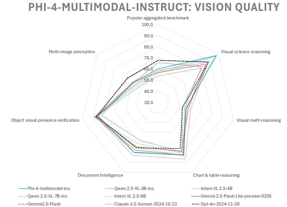 - 擅长视觉科学推理:Phi-4 在这一类别中得分最高,超过了大多数竞争对手。