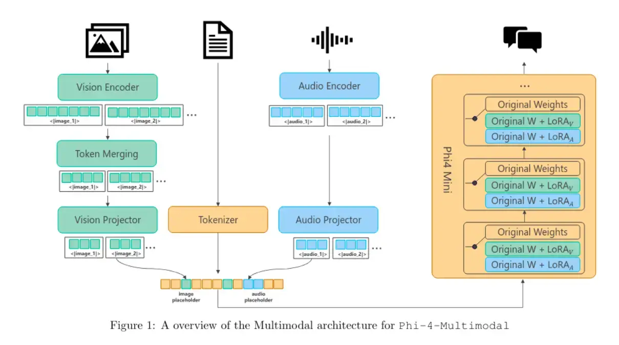 - 统一多模态处理:与需要为不同输入类型建立独立管道的传统模型不同,Phi-4 利用其低秩适配器(LoRAs)混合物,将语音、视觉和文本整合到一个处理空间中。