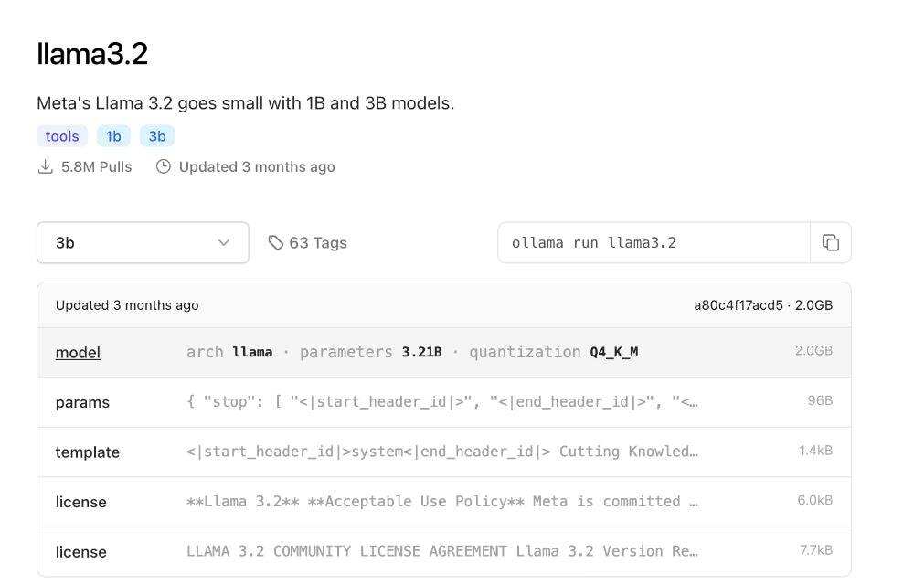 llama3.2 是 Meta 公司专为内容创建、摘要和检索增强生成(RAG)等任务而设计的模型。它支持多种语言,包括英语、西班牙语和法语,而且结构紧凑,非常适合轻量级应用。如果您需要更强大的功能,可以选择像 llama3.3 这样拥有 700 亿个参数的大型模型。不过,较大的型号需要更多的计算资源,因此在更换之前,请确保您的系统能够承受。
