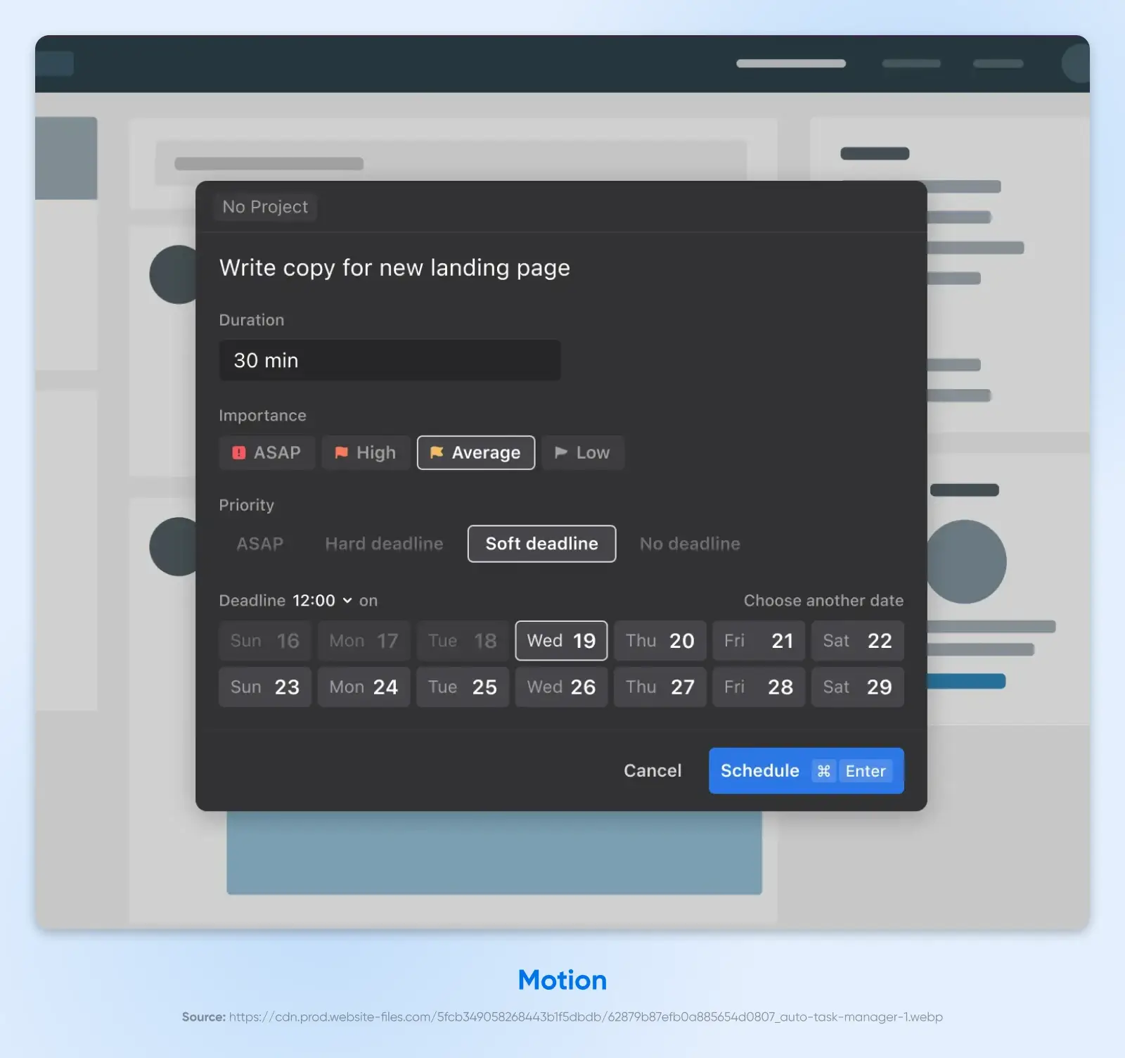 人工智能可以缩短这一过程。像 Motion 和 Clockwise 这样的工具可以在几分钟内起草出一份日程表草案,并帮助你为新的会议和任务找出合适的空隙。Motion 甚至还能在你准备把自己拉得太长时进行干预。