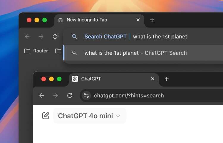 默认情况下,命令栏设置为使用谷歌搜索。但您可以将其更改为使用 ChatGPT 进行搜索。具体方法如下: