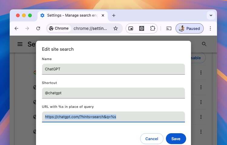 Chrome 浏览器是最流行的浏览器之一,为 ChatGPT 设置搜索快捷方式非常简单。