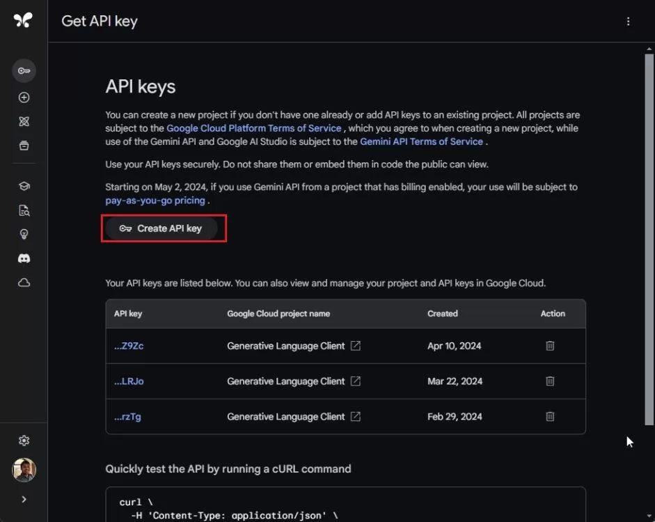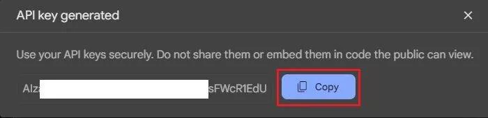 - 就这样!Gemini 1.5 Pro API 密钥将立即生成。复制并安全保存。
