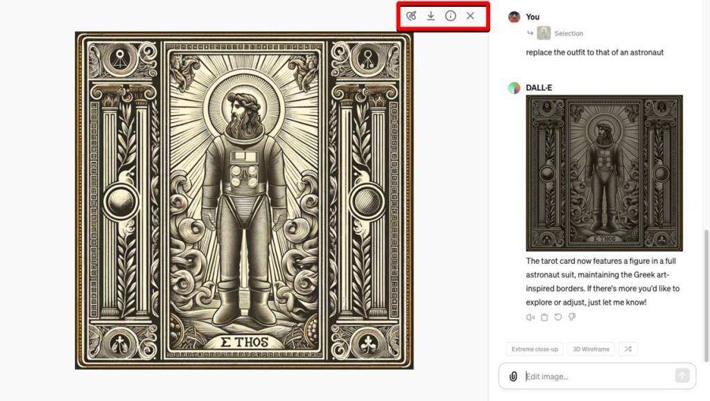 - DALL-E 将开始创建新图像。完成后,您将在屏幕上看到修改后的图像预览。您可以下载该图像,或使用上面的 Select 工具进一步编辑。