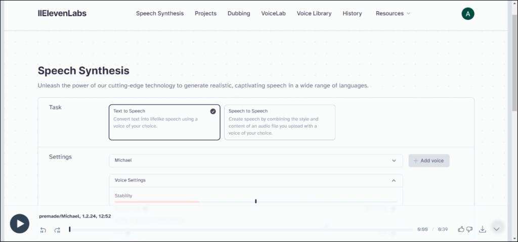 ElevenLabs 平台上大部分语音的可用性给我留下了深刻印象。但它不会让你添加停顿、强调甚至单词发音等细微差别。相反,你可以调整语音的稳定性和清晰度,以获得一致的单调语音效果,或获得不同效果的自然语音。