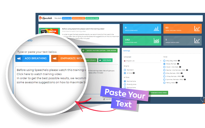 - 丰富的配音选择,包括不同年龄段和风格的男性和女性配音。