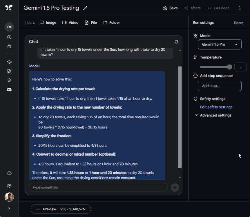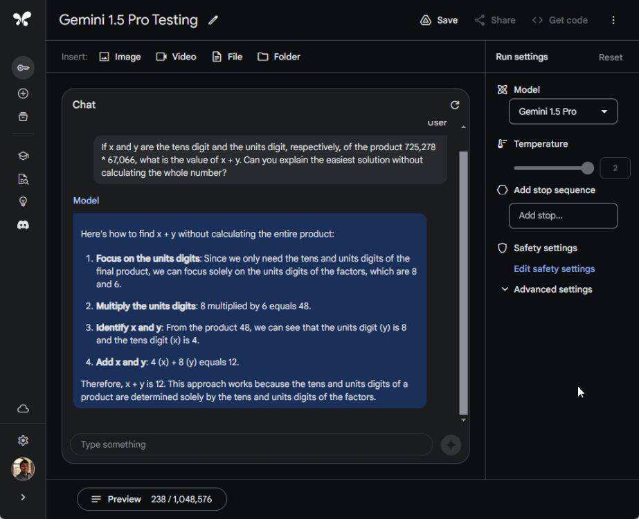 在 Maxime Labonne 的帮助下,我借用了他的一个数学提示来评估 Gemini 1.5 Pro 的数学能力。Gemini 1.5 Pro 以优异的成绩通过了测试。