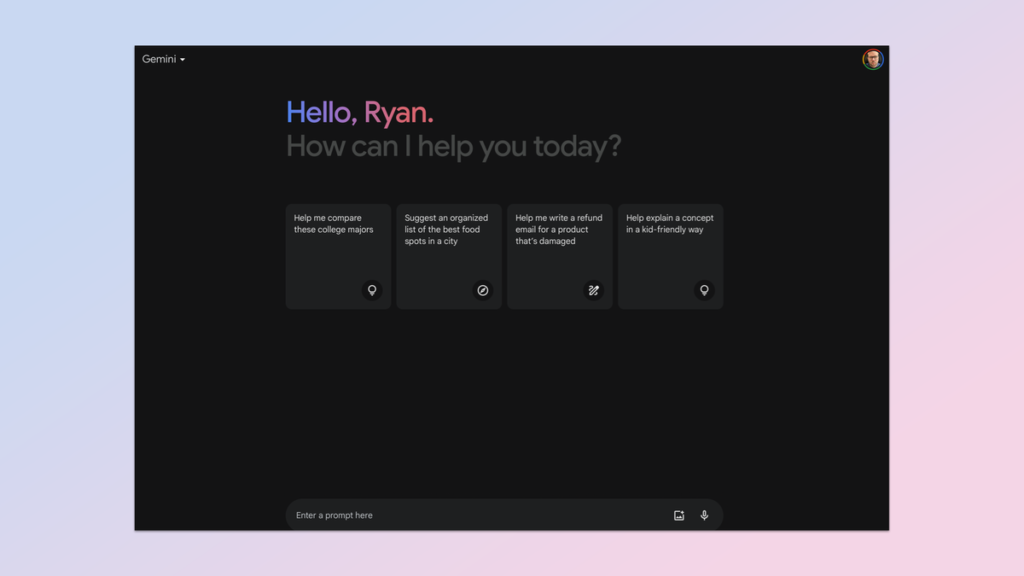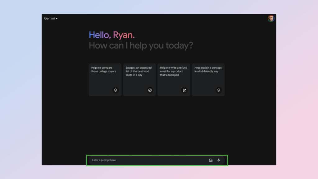 访问 gemini.google.com,现在应该可以立即进入人工智能工具。如果没有,请检查您是否已获得访问权限。