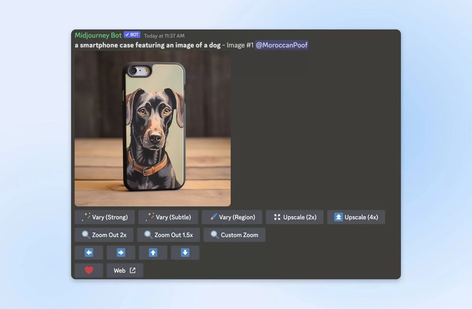 Web ↗️:使用此按钮打开 Midjourney 网站上的图片。(如果提示你登录,你可以通过 Discord 登录。