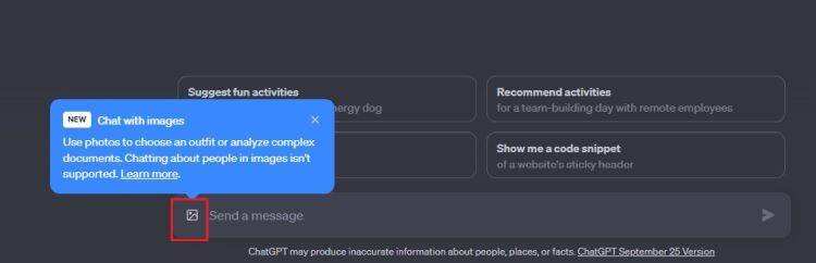 4. 现在,如下图所示,信息框左下方会出现 “Chat with images” 选项。