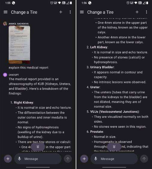 7. 接下来,我向 ChatGPT 上传了一张图片,并要求它解释医疗报告。它识别了文本并正确解释了结果。尽管如此,请不要依赖 ChatGPT 进行医疗诊断,而应咨询医生。