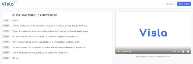 正如你所注意到的,视频使用了免费的素材和配音。Visla AI 还提供高级订阅服务,用户可以访问高级素材库,并改进语音和文本生成限制。该计划起价低至每月 19 美元。用户可以访问 Visla AI 官方网站了解更多信息。