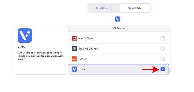 最后,从 GPT-4 下拉菜单中选择 Visla 作为主插件,然后按照以下步骤操作。