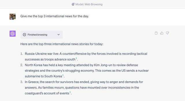 - 现在,只需向ChatGPT询问任何需要访问互联网的问题。它会自动浏览必应,并让你在ChatGPT中使用它。