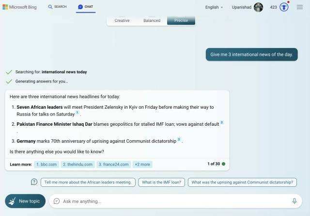 - 正如你所看到的,微软必应与ChatGPT一起工作,并对我们输入的随机查询给出了答案。重复以上步骤,随时使用ChatGPT和Bing。