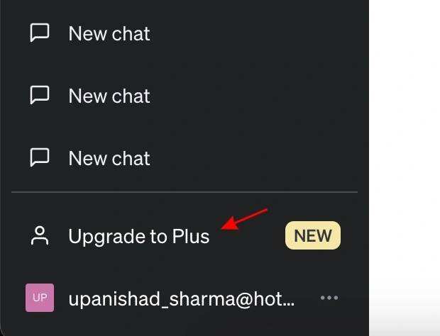 - 进入聊天界面后,点击侧边栏左下方的 “Upgrade to Plus” 选项。