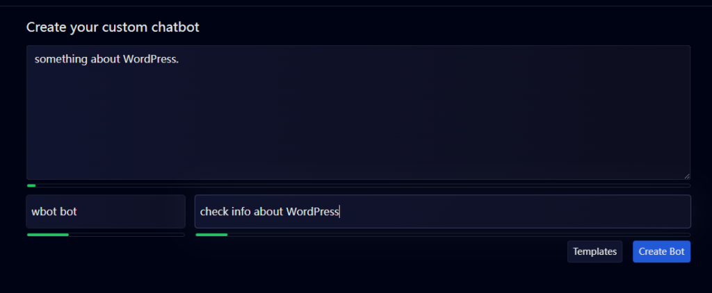 注册登录后,创建自定义智能聊天机器人,随便输入描述您的自定义聊天描述即可,最后点击Create Bot。