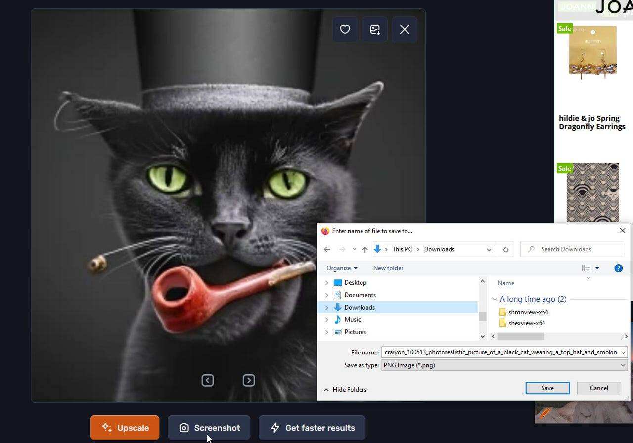 点击一张你喜欢的图片,它就会以较大的尺寸出现。从那里,点击Upscale按钮,尝试提高分辨率和质量。点击屏幕截图按钮,将其保存为PNG文件。