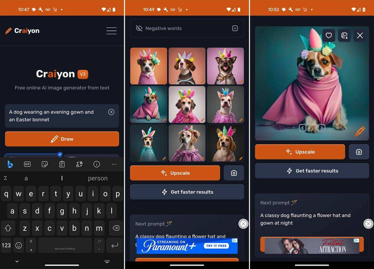 一大批由人工智能驱动的网站和服务可以根据你的描述创造图像和艺术品。一个值得尝试的网站是Craiyon。Craiyon的免费(但有广告支持)网络版将根据你的文字描述生成艺术、绘画和照片。付费版本则免去了广告,并加快了处理时间。还有一个Craiyon的安卓应用,供你的手机或平板电脑使用。