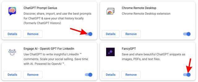 有时,问题不在于缓存,而在于您所安装的大量扩展程序中的一个。如果您已经浏览了我们的最佳Chrome浏览器ChatGPT扩展列表,您一定已经有很多扩展来扩展机器人的效用。然而,各种扩展程序安装在一起无疑会造成冲突,并导致ChatGPT内部服务器错误 幸好禁用浏览器扩展程序很简单。按照下面的步骤,可以快速完成: