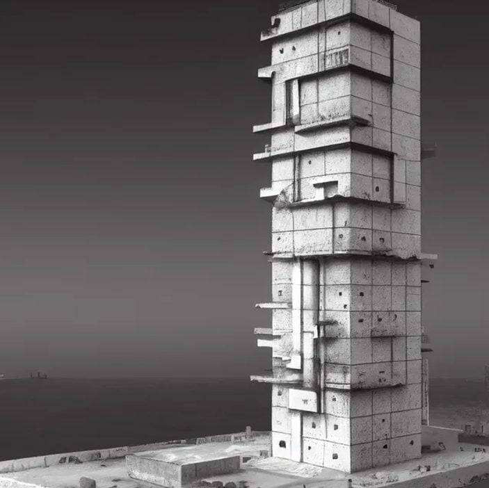 Prompt: architecture sand concrete monolith big building on fire brutalist monumental symetric texture barbican cinematic unreal engine raw