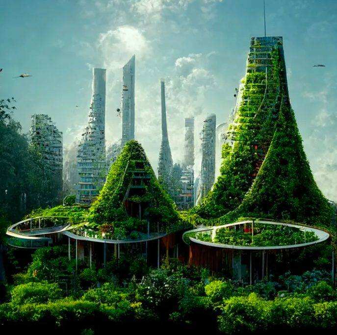 Prompt: Solarpunk gardens, realistic, natural, 8k, vibrant, sculpture, architecture, environment, city, forest