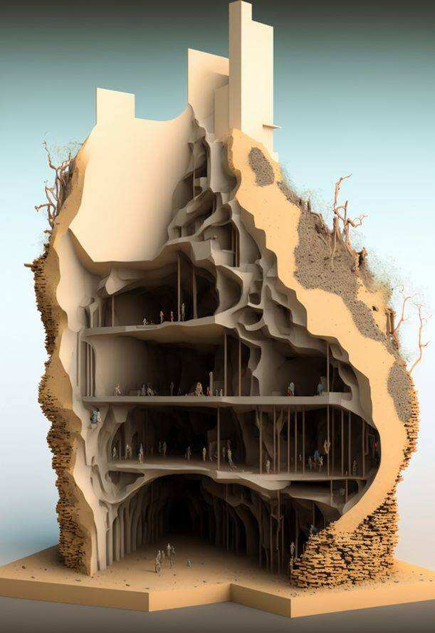 Prompt: Architecture 3D model section inspired by termite mound, 3D model section, intricate and full of detail 3D model section, Architecture section, Termite Mound, Biomorphic architecture, detailed, cinematic light, unreal engine,
