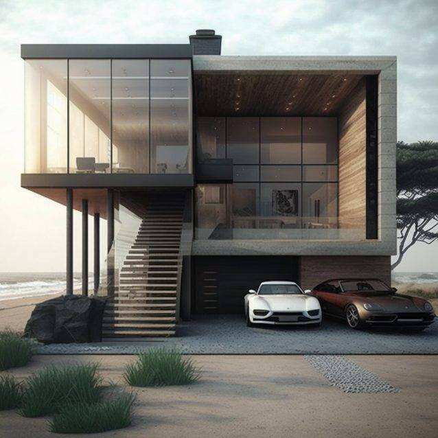 Prompt: modern elegant and raunchy architecture house next to the beach