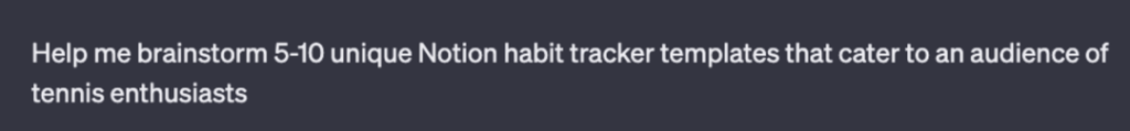 Prompt: Help me brainstorm 5-10 unique Notion habit tracker templates that cater to [NICHE].