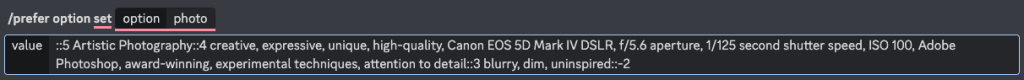 现在,每当你在提示中加入” – photo “,它就会自动使用你的首选选项提示。