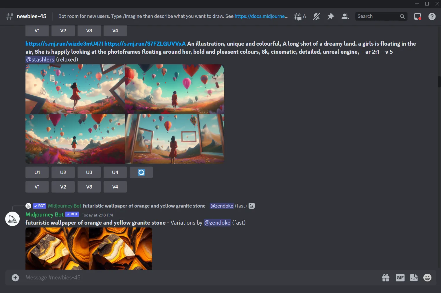 要调出令人着迷的图像,只需在指定频道或直接信息中输入/imagine命令。在提示字段中描述你想创造的视觉杰作,然后点击返回。惊奇地看着Midjourney编织它的魔力,并生成一组由你的视觉启发的四张图片。