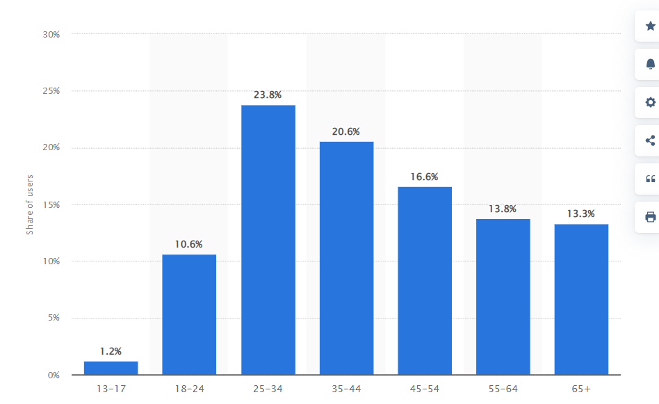 企业必须了解哪些信息服务在特定的地理-人口统计学中是受欢迎的,以确保客户意识。例如,如果你的目标市场是25至34岁的美国人,Facebook Messenger可以是一个很好的连接媒介。然而,对于18-24岁的年龄组来说,它并不那么有效(见图6)。