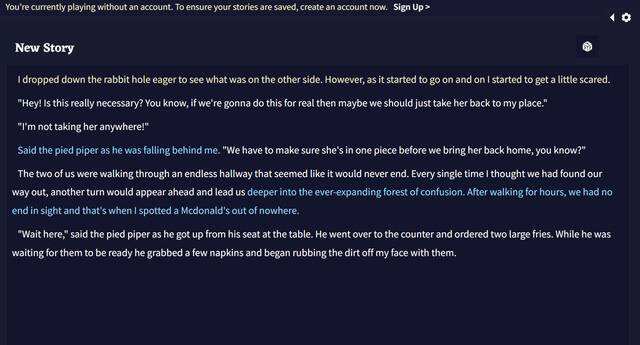 还有一种文字冒险模式,使用你的提示,Novel AI做、说或创造整个故事,基本上是由你的提示在NPC冒险中主演。在这两种模式中,Novel AI提供各种定制选项来调整AI,但你很难做到这一点。