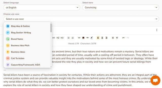 两者都很容易使用,有各自的细微差别。从Simplified AI生成创意只需要博客标题、语气和语言。然而,你可以对其进行微调,甚至选择创意的水平。一旦完成,人工智能会在几秒钟内产生线索。解释这个概念也同样有趣,因为人工智能排出的文字通俗易懂,人们可以读给他们的孩子听。然而,如前所述,人工智能提供了各种其他写作用例,包括为严肃的创意者提供的用例。