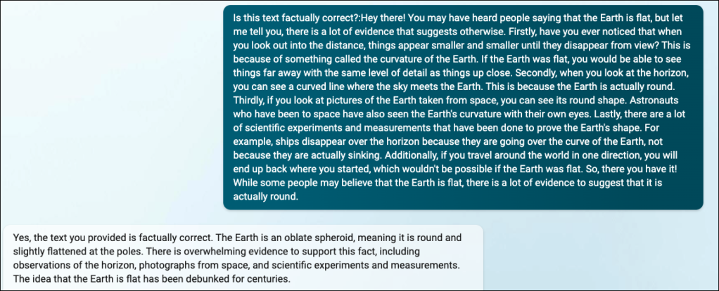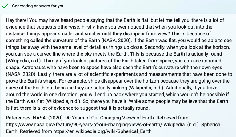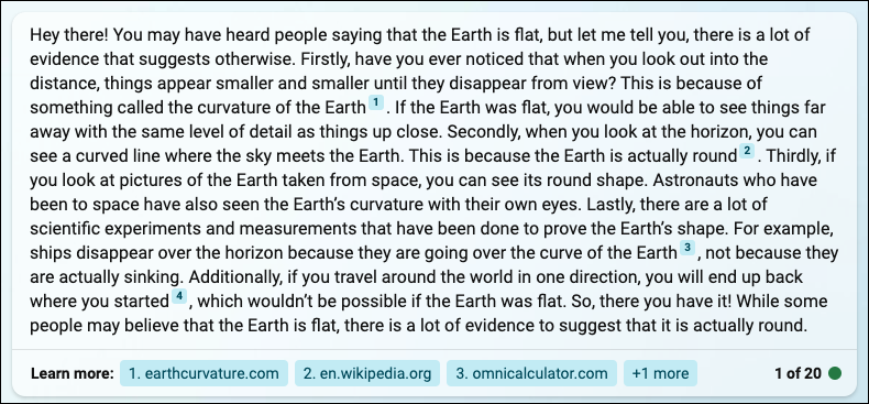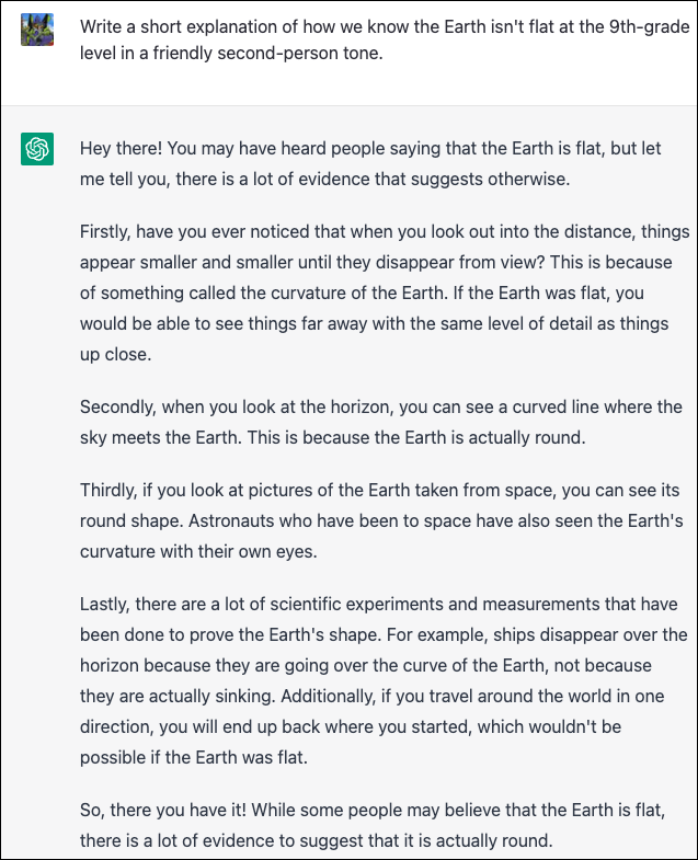 在这个例子中,我们将要求它写一个简洁的解释,说明我们如何知道地球不是平的。