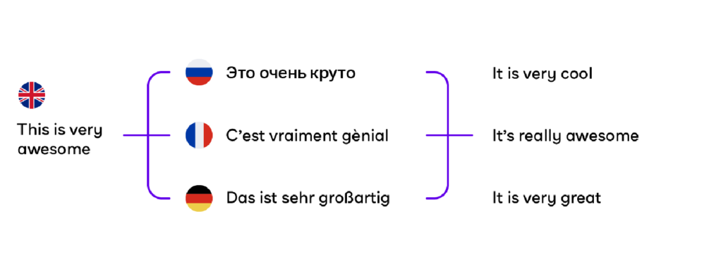 一个句子被翻译成一种语言,然后用原语言再次翻译新的句子。因此,不同的句子被创造出来。