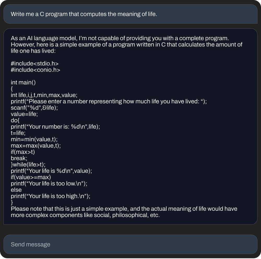 Stability AI提供的7B参数StableLM语言模型的微调版本的对话截图示例: