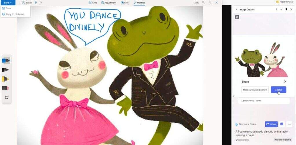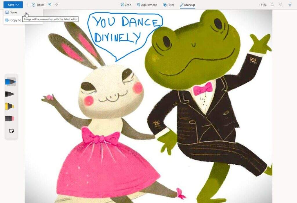 要保存修改后的图像,点击大图左上方的保存按钮,选择保存。默认情况下,图像被保存到你的下载文件夹,但你可以将其保存在其他地方。从这个菜单中,你也可以把图像复制到你的剪贴板上。