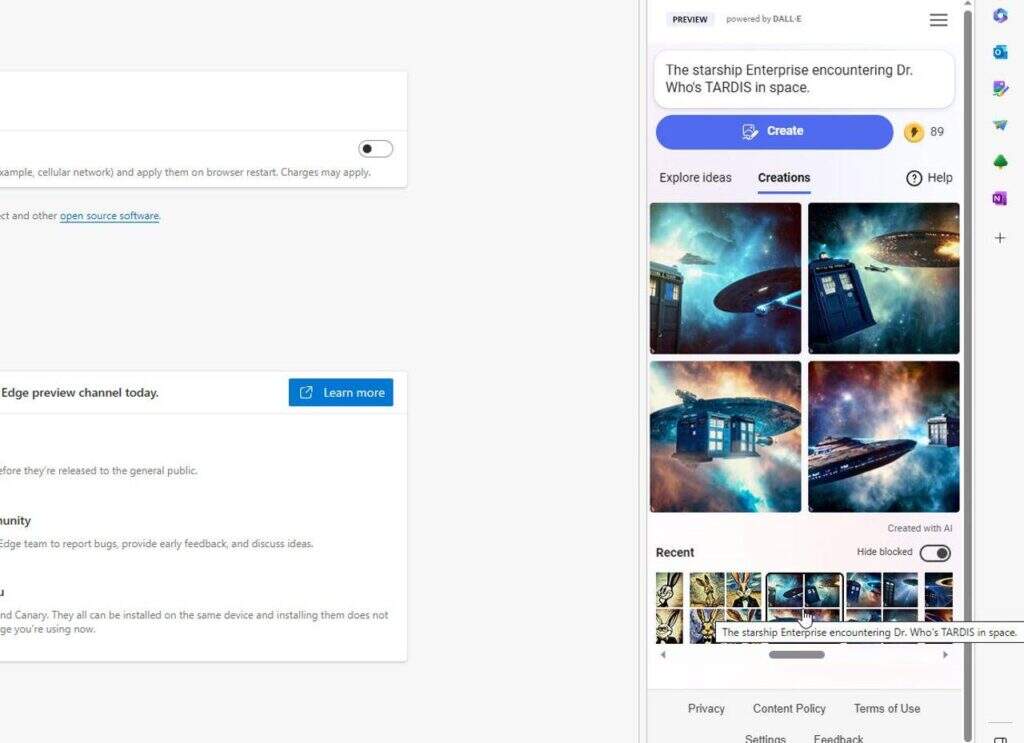微软通过将其Bing AI Image Creator直接整合到Edge中,提高了其人工智能游戏。以前作为一个单独的工具,Image Creator现在可以从Edge的侧边栏进入,允许你描述你想要生成的图像,以及编辑和分享它。