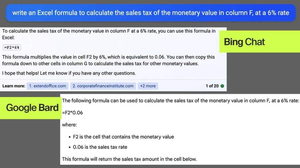 Bing Chat和Google Bard是如何回答我给ChatGPT的同一个提示的,即写一个计算销售税的公式。