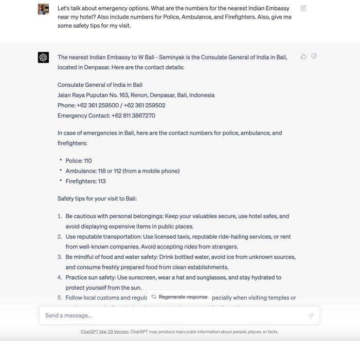 Note:一定要仔细检查与您的目的地有关的官方网站上的紧急号码。千万不要把ChatGPT的说法当作是你的最终答案。