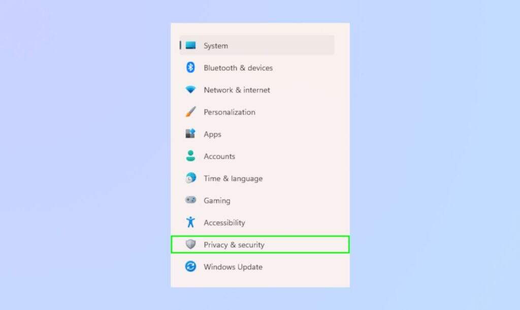 接下来,点击位于 “设置” 窗口左侧的 “隐私与安全性“。
