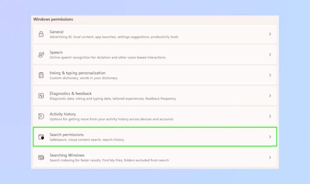 完成上一步后,向下滚动到搜索权限,并点击进入。
