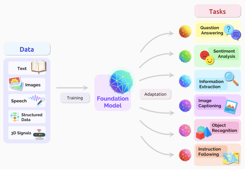 虽然基础模型不是新的,但其最近的影响是新的。这就是为什么研究人员没有选择目前使用的术语,如 “自我监督” 或 “预训练模型”,而是创造了 “基础模型” 这一术语。