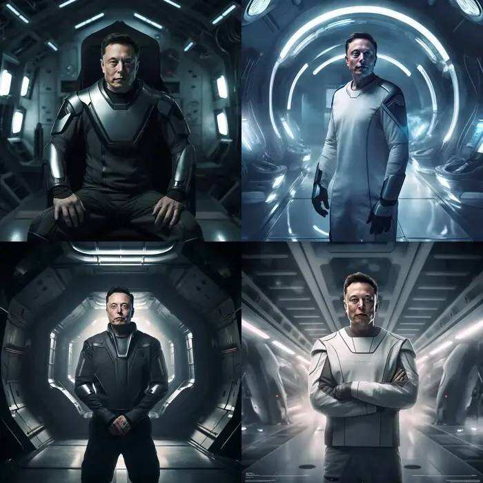 “Capture a reimagined portrait of Elon Musk as a futuristic superhero in his SpaceX headquarters. The photo should feature Musk in a power pose with a confident expression, wearing a customized space suit that highlights his superhero persona. The background should showcase the advanced technology and machinery in the SpaceX facility, with a focus on the futuristic elements. Use a mirrorless camera with continuous autofocus to capture the details of the space suit and the intricate machinery in the background. Set the ISO to 800 and the shutter speed to 1/200 to maintain a balanced exposure. Use a wide aperture of f/2.8 to create a shallow depth of field and separate Musk from the background. The final image should be high resolution and have a cinematic quality with a color grading that complements the futuristic theme –v 5”
