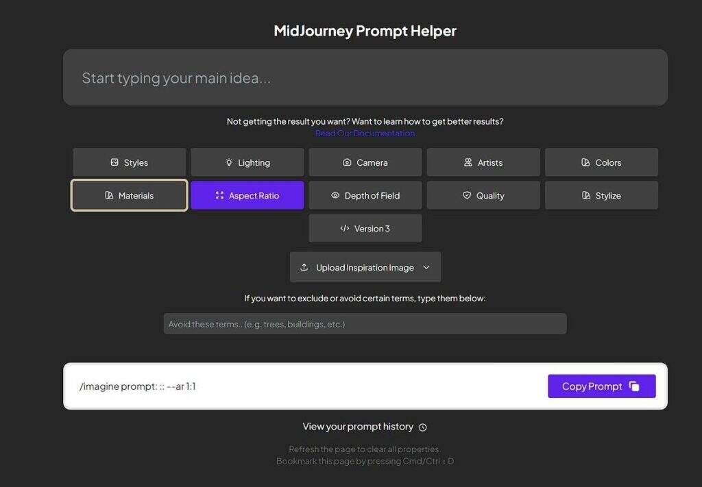 MJ Prompt Tool是一个先进的工具,具有GUI功能,使你很容易输入所有必要的信息来生成一个图像。只需输入你的主要想法,然后使用各种选项来微调你的提示。