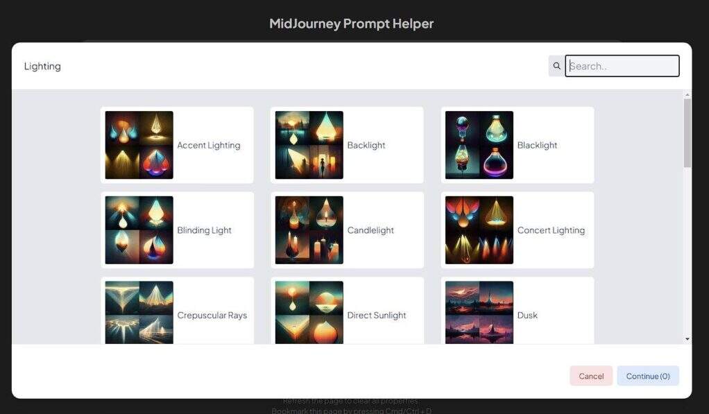 然而,它的出色之处在于它能够提供几个图片参考,帮助建立你的提示。这意味着你可以用图像作为灵感来指导你的提示,使你更容易达到预期的效果。如果你是一个喜欢有视觉参考来帮助指导你的提示语的人,MjPromptBuilder是你的一个好选择。